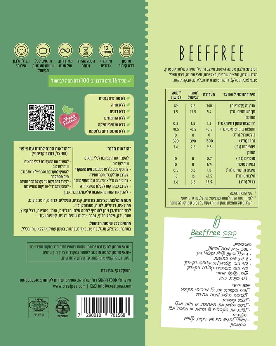 המוצרים מכילים חומרי טעם וריח של חלבון אפונה ובעלי תו תקן אירופאי מחמיר בלבד.