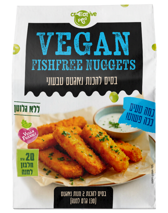 - מרקם ריאליסטי: תערובת על בסיס חלבון אפונה מרקם ומבודד יוצרת מבנה מוצק הדומה לפילה דג לבן, ללא שימוש בסויה או גלוטן.