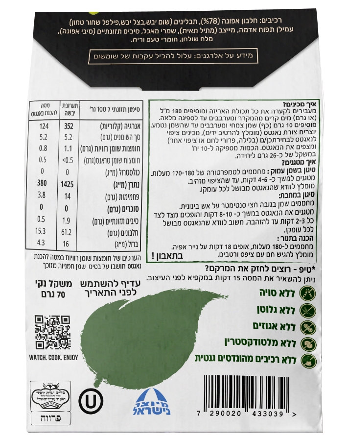 - מנות מאוזנות: שקית של 70 גרם של התערובת מספיקה לעשרה מקלות פריכים של 130 גרם, המתאימים לארוחות משפחתיות.